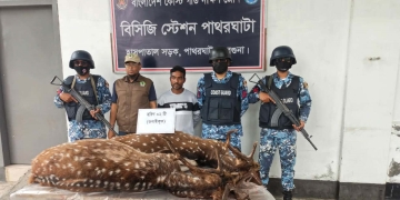 বরগুনায় ফাঁদসহ জবাই করা দুটি হরিণ উদ্ধার