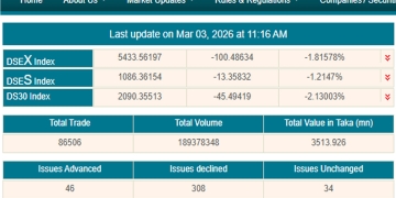 শেয়ারবাজারে এক মিনিটে সূচকের রেকর্ড ২২৩ পয়েন্ট পতন
