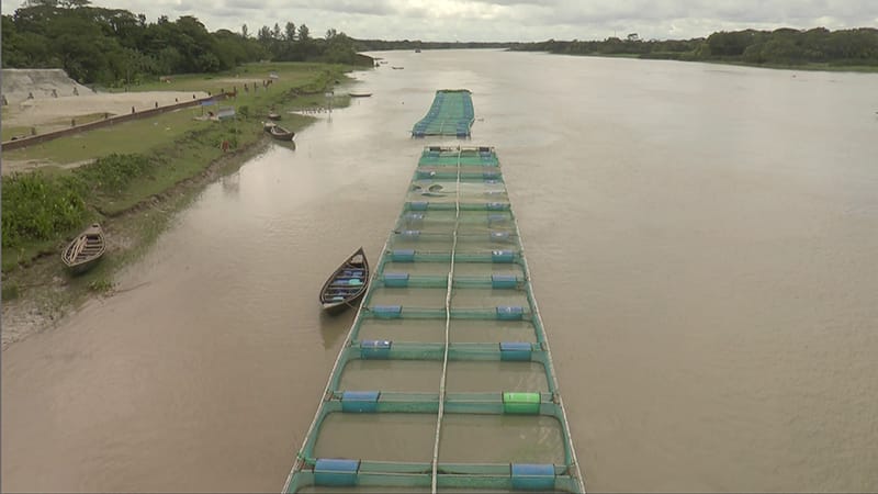 সরেজমিনে গিয়ে দেখা গেছে,উপজেলার যমুনা নদীতে খোকসা বাড়ি ইউনিয়নের গোনোরগতি গ্রাম এবং সিরাজগঞ্জ শহরের শহীদ রাসেল পৌর পার্কের সামনের যমুনা নদীতে বড় বড় খাঁচায় ভাসমান পদ্ধতিতে মাছ চাষ করছেন মাছ চাষিরা ।
